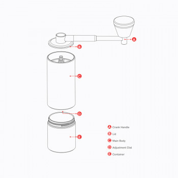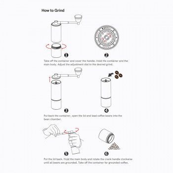 The dual central bearing ensures stable burr alignment and consistent grinding. The manual grinder offers around 36 grind settings. You can easily adjust the desired fineness, from fine to coarse, using the adjustment dial. Turning clockwise results in a finer grind; turning counterclockwise produces a coarser grind.
